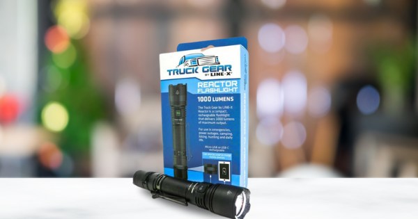 Ideal for use in emergencies, power outages, camping, hiking, hunting, and daily life. The LINE-X Reactor tactical flashlight has a rechargeable battery and comes with the ability to charge other devices. Give the gift that can light up the darkness with a high-intensity beam all in an IPX-8 waterproof platform.